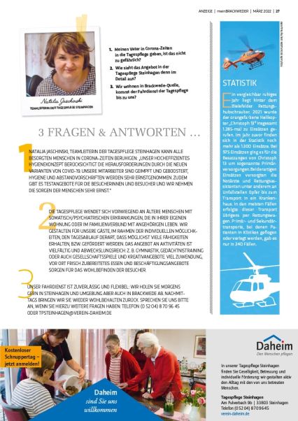 - Texte und Fotos aus »Mein Brackweder« sind urheberrechtlich geschützt. Weiterverwendung nur mit schriftlicher Genehmigung der Redaktion. www.mein-brackweder.de