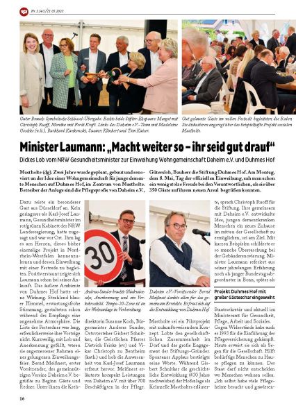 Dickes Lob vom NRW Gesundheitsminister zur Einweihung Wohngemeinschaft Daheim e.V. und Duhmes Hof