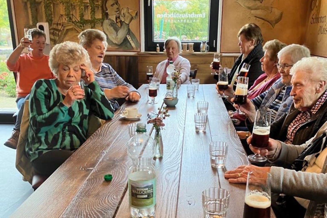 Los ging es am 27. September, zeitig und mit dem Bulli der Tagespflege: ab in den Gartenschaupark Rietberg. Nach beschaulichen Gartenimpressionen von herbstlich gestimmter Blütenpracht in den Anlagen und Blumenbeeten, steuerte man gern das erste Ziel zur Stärkung an, das Café mit dem Motto „Aber bitte mit Sahne“. Hier gab es leckeren Kaffee mit Kuchen und später, zum krönenden Abschluß, im Emsbräustübchen eine gesellige Runde mit Bierverkostung und bei gelockerter Stimmung auch fröhlichen Gesang mit Schunkeleinlagen. Die Gruppe der Tagespflege konnte bei der späteren Heimfahrt auf einen tollen Sommertag mit vielen schönen Eindrücken zurückschauen.