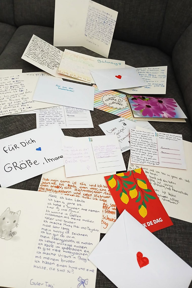 Vor einiger Zeit kam es zu einem eher zufälligen Kontakt der Tagespflege Marienfeld mit einer Schule in Holland. Dort lernen die Kinder Deutsch als Fremdsprache und schreiben sich nun seit ein paar Wochen regelmäßig mit den Senior:innen. Die Bilder zeigen eine bunte Auswahl der lieben Botschaften. Hier kann man gut nachvollziehen, dass das Erlernen einer neuen Sprache nicht so leicht ist und sich so manche Schüler:in müht. Aber die lieben und geduldigen Antworten der Gäste aus der Tagespflege sind immer motivierend und positiv. Man schreibt von sich, seinem Leben und dem Alltag, von Hobbies und Erlebten und da haben die alten Damen und Herrren eine Menge zu erzählen und natürlich zu schreiben.