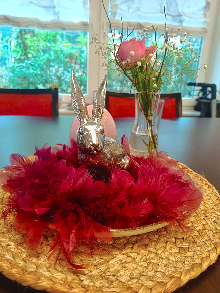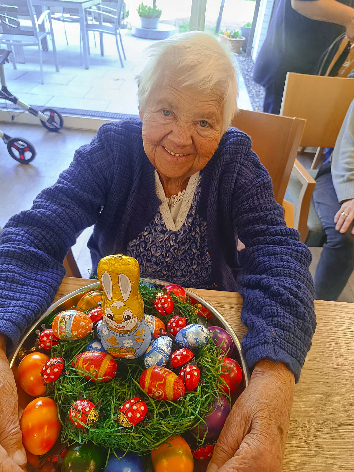 Die Tagespflege Steinhagen machte nach dem Frühstück mit reich gedecktem Tisch noch eine große, besinnliche Osterrunde mit Spielen und Gesang. Auf eine ansprechende Osterdeko wurde bei allen Tagespflegen viel Wert gelegt und man hatte die Zeit der Karwoche und davor gut genutzt.