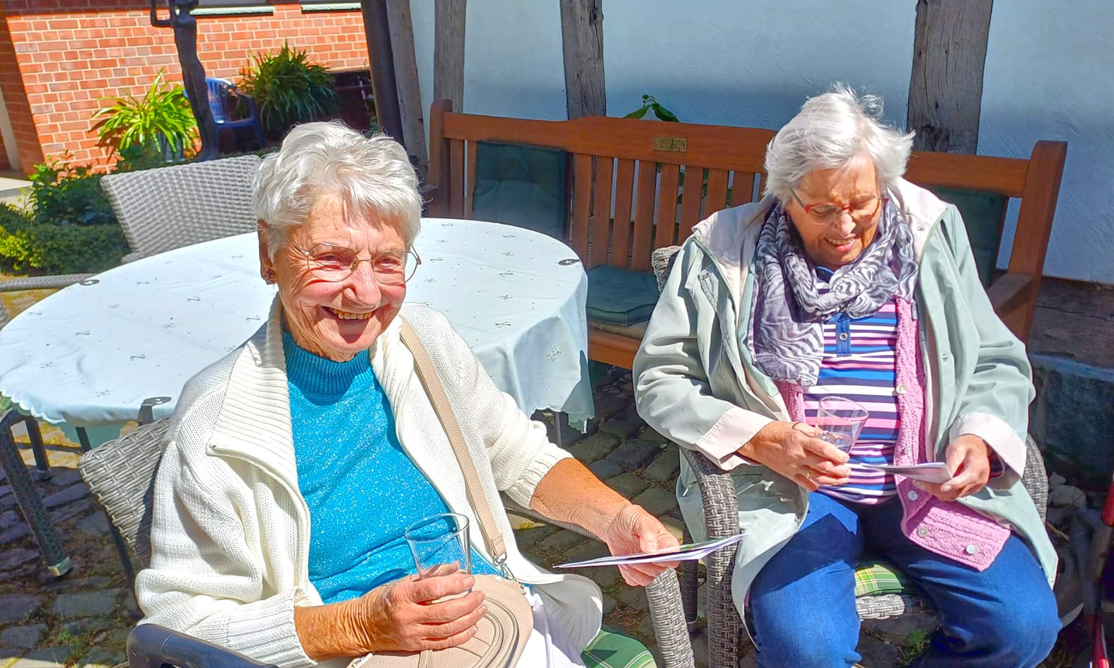 Nach der Führung gab es noch Zeit für eine Pause im schönen Schulgarten und die Möglichkeiten, Erinnerungen an die eigene Schulzeit auszutauschen. Der Daheim-Bulli brachte dann unsere Gäste wieder schnell und sicher zurück nach Werther.