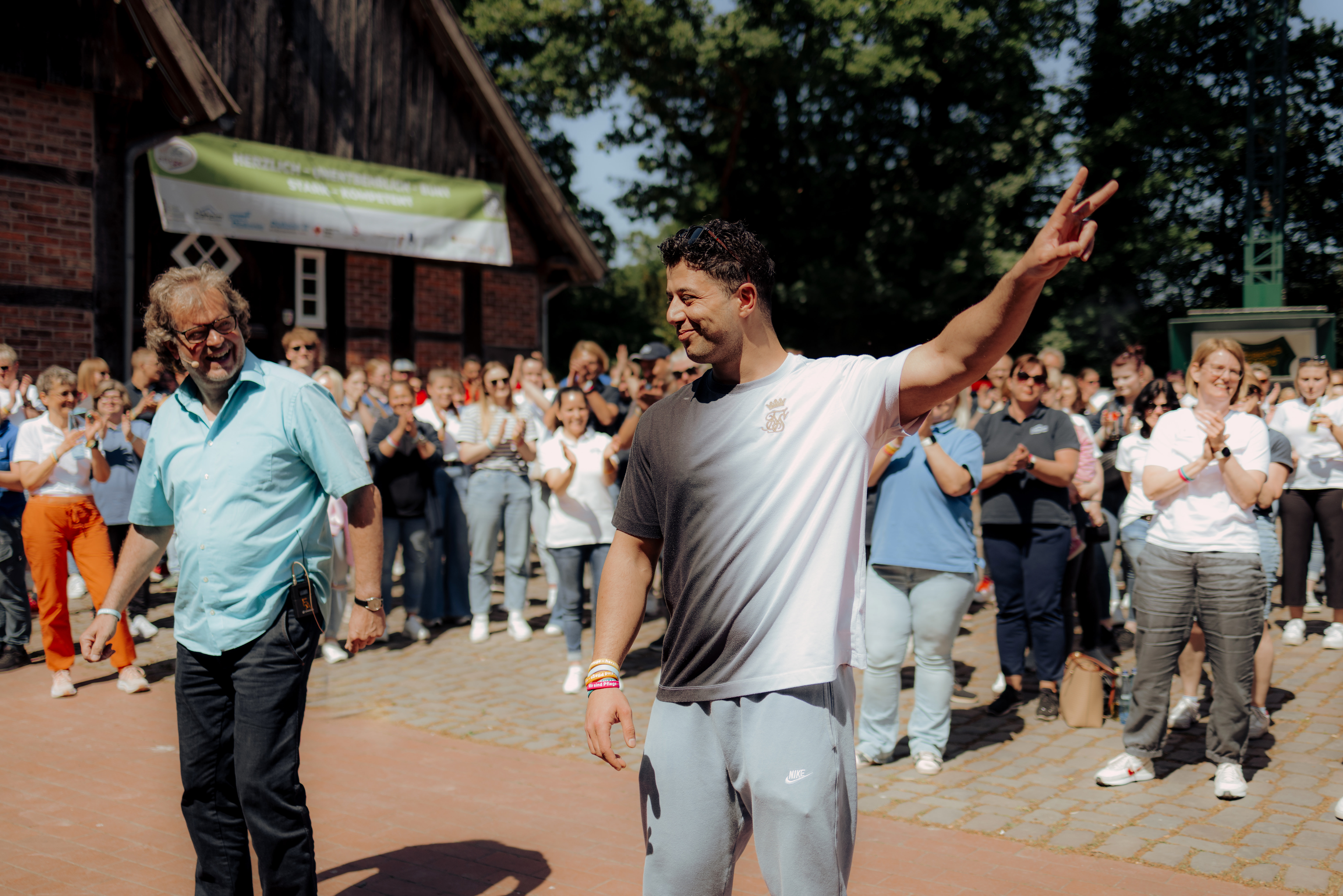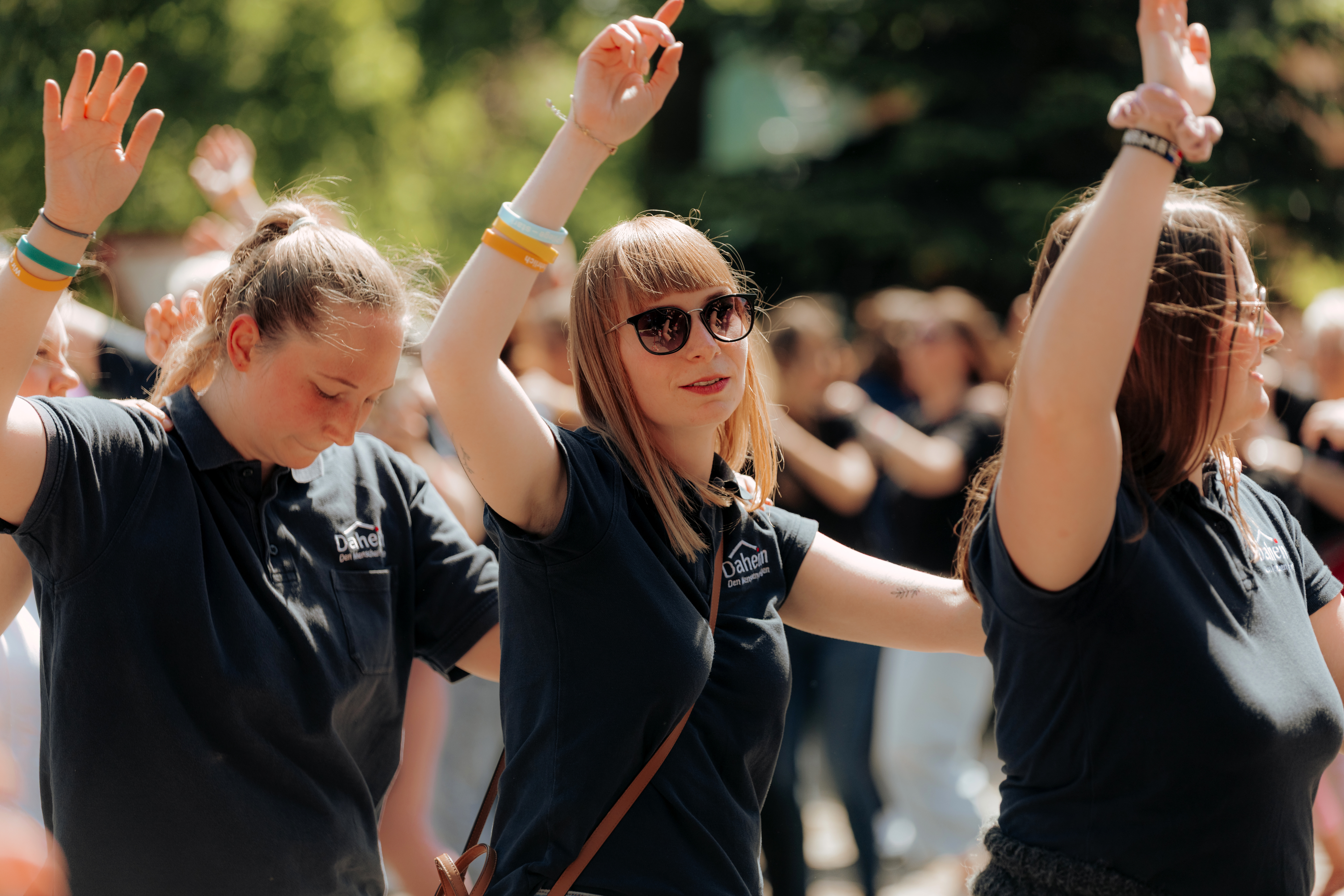 Darüber hinaus übten die Mitarbeitenden unter Anleitung von Stefan Kleinstück eine schwungvolle Tanzchoreografie ein, was das Wir-Gefühl noch verstärkte. Stefan Kleinstück ist Koordinator der bundesweiten Initiative „Wir tanzen wieder!" und gestaltet viele weitere Tanzveranstaltungen für Menschen mit und ohne Demenz. „Unsere Pflegekräfte sind immer in Bewegung", erklärte Stefan Rischer, Hausleitung aus dem Ev. Johanneswerk, das Motto. „Sei es im direkten Kontakt mit den Hilfebedürftigen oder durch sich ständig wandelnde Anforderungen und gesellschaftlichen Rahmenbedingungen."