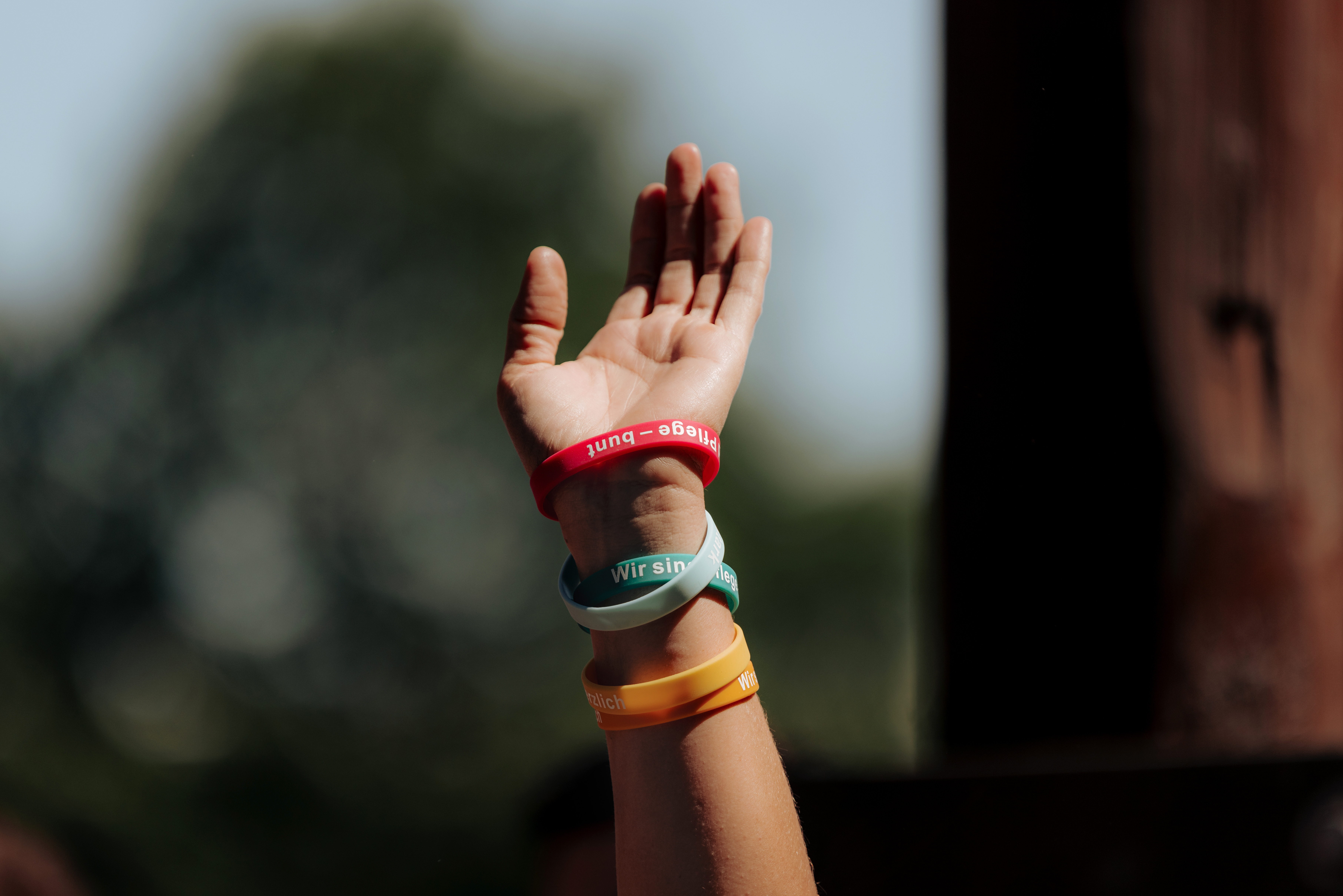Mit diesen Adjektiven spielte Helge Pabst auf die farbigen Armbänder an, die die Mitarbeitenden bei der Aktion trugen und die für die Vielfalt in der Pflege standen. „Wer in der Pflege tätig ist, hat mit den unterschiedlichsten Menschen und Notlagen zu tun. Auch bei den Mitarbeitenden selbst spiegelt sich diese Vielfalt wider."
