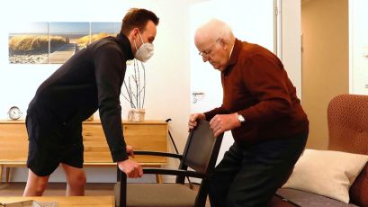 Unsere Mitarbeiter der internen ambulanten Ergotherapie bieten exklusiv den Bewohnerinnen und Bewohnern der Hausgemeinschaften ein fein abgestimmtes Programm zur Mobilisierung und individuellen Motivation.