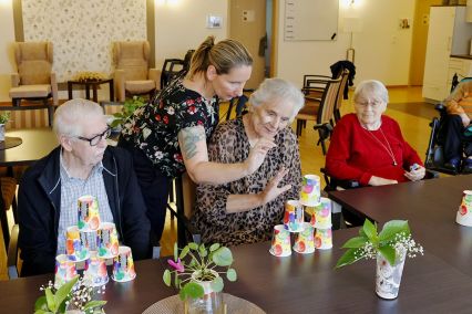 Unter Berücksichtigung der Interessen, Ressourcen und Biografie der Bewohner gestalten unsere Ergotherapeutinnen Gruppen – und Einzelangebote. Hierbei dienen ausgewählte Handlungen, Mittel und Methoden dazu, dem Bewohner möglichst viel Handlungsfähigkeit im Alltag und gesellschaftliche Teilhabe zu ermöglichen.