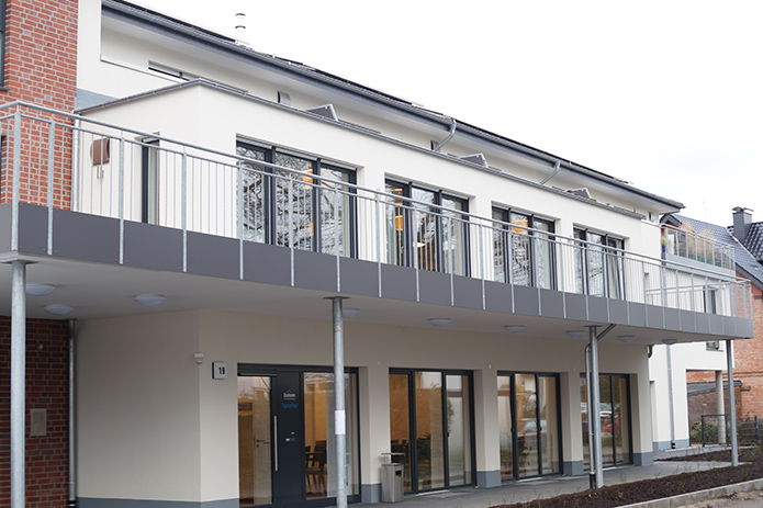 Die Hausgemeinschaft befindet sich im 1. Obergeschoß. Große, helle Fenster schaffen eine freundliche Raumatmosphäre, die Balkonterrasse wird im Sommer gern genutzt – auch zum grillen. Im Erdgeschoß befindet sich die Tagespflege Werther.