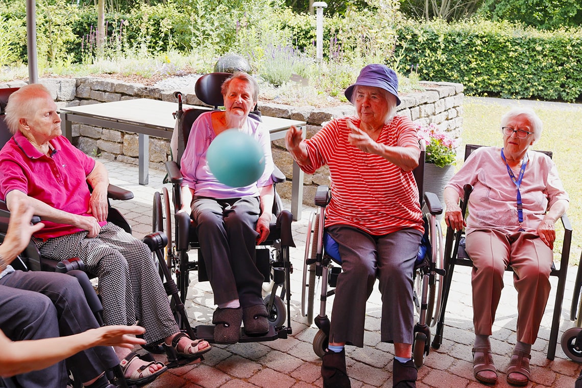 Unsere Mitarbeiter der internen ambulanten Ergotherapie bieten exklusiv den Bewohnerinnen und Bewohnern der Hausgemeinschaften ein fein abgestimmtes Programm zur Mobilisierung und individuellen Motivation.