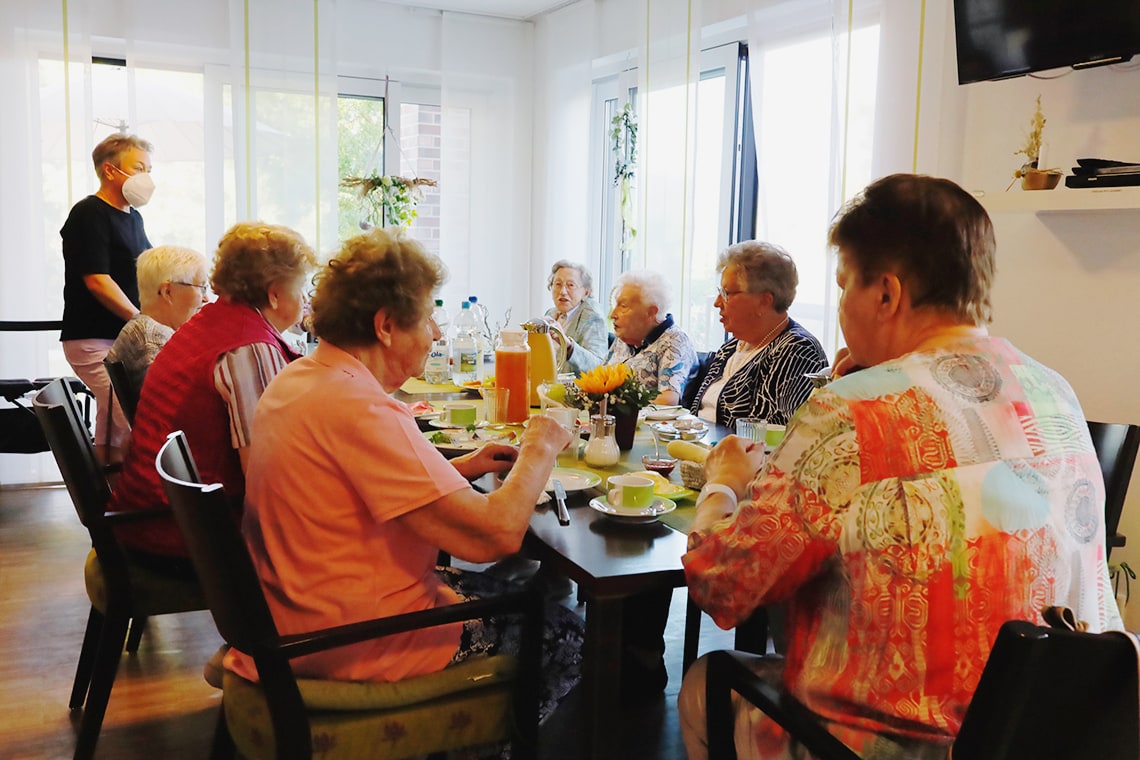 Das Angebot der Tagespflege kann von unseren Besucher:innen so oft sie möchten in Anspruch genommen werden – sei es, dass sie jeden Tag in der Woche zu uns kommen möchten oder auch nur an zwei oder drei Tagen. Der Alltag in der Tagespflege orientiert sich am Alltag: Hier wird gemeinsam frisch gekocht, gegessen oder geklönt.