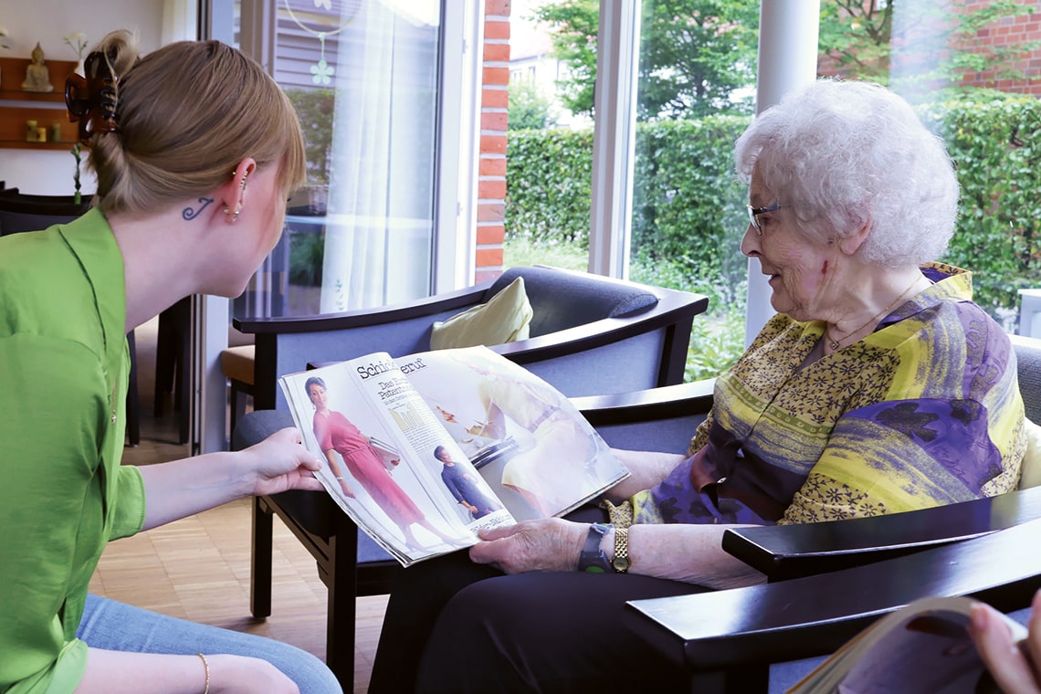 Das Angebot der Tagespflege kann von unseren Besucher:innen so oft sie möchten in Anspruch genommen werden – sei es, dass sie jeden Tag in der Woche zu uns kommen möchten oder auch nur an zwei oder drei Tagen. Der Alltag in der Tagespflege orientiert sich am Alltag: Hier wird gemeinsam frisch gekocht, gegessen oder geklönt.