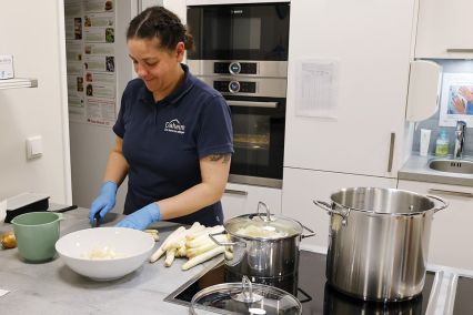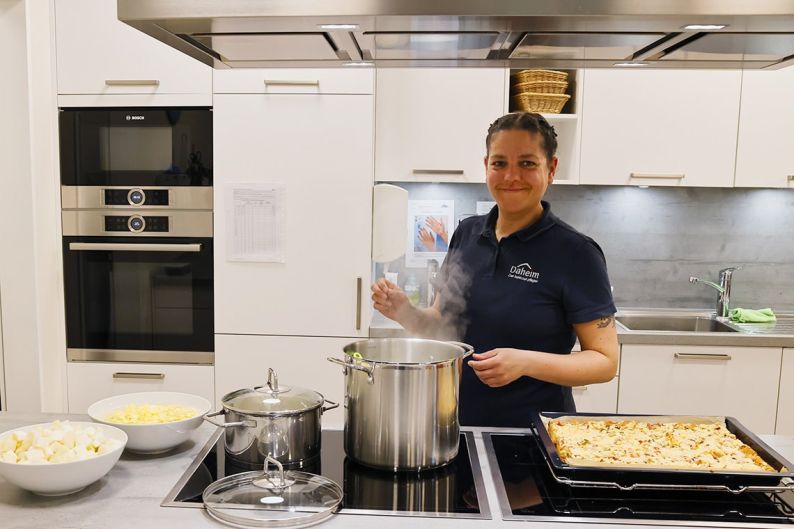 Das Angebot der Tagespflege kann von unseren Besucher:innen so oft sie möchten in Anspruch genommen werden – sei es, dass sie jeden Tag in der Woche zu uns kommen möchten oder auch nur an zwei oder drei Tagen. Der Alltag in der Tagespflege orientiert sich am Alltag: Hier wird gemeinsam frisch gekocht, gegessen oder geklönt.